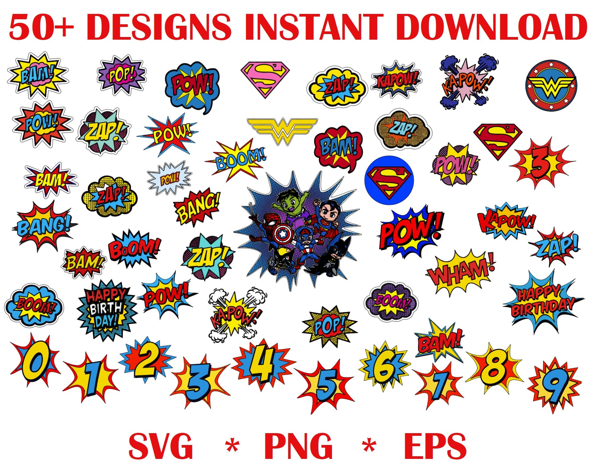 Bang Boom Blast Svg Bundle Superhero Svg Happy Birthday Etsy